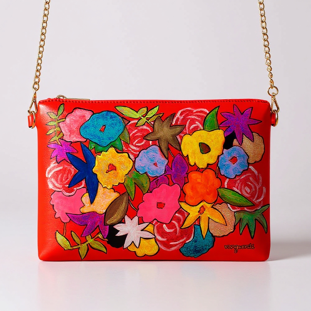 Hand painted leather bag with waterproof paints and varnishes. Unique model in the world.
