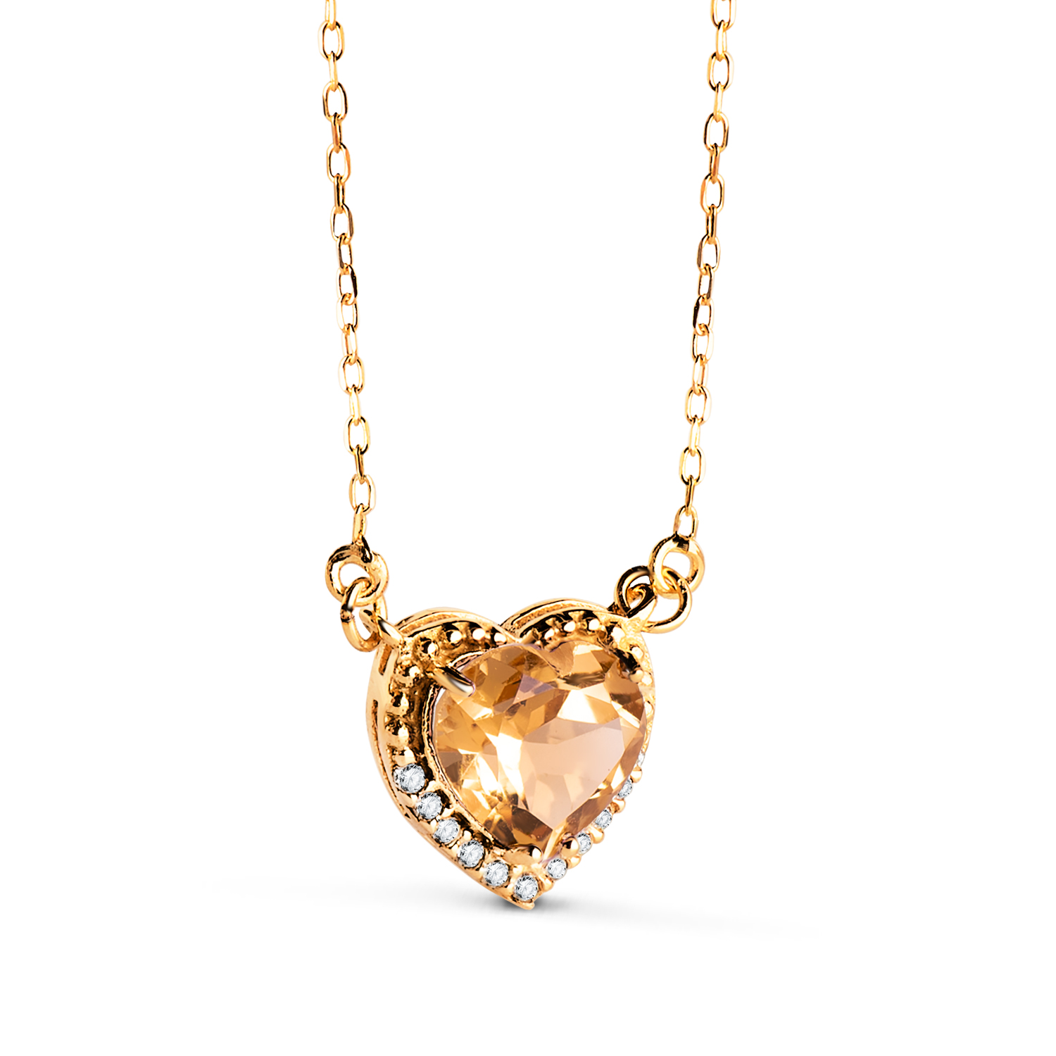 A lovely expression of affection, this 18-karat yellow gold necklace features a delicate heart-shaped citrine measuring 7 mm. The central citrine is framed by a dazzling halo of zircons, adding a brilliant sparkle to the design. This charming piece is completed by a fine 40-2 cm chain, making it a perfect gift or a beautiful symbol of love to cherish.